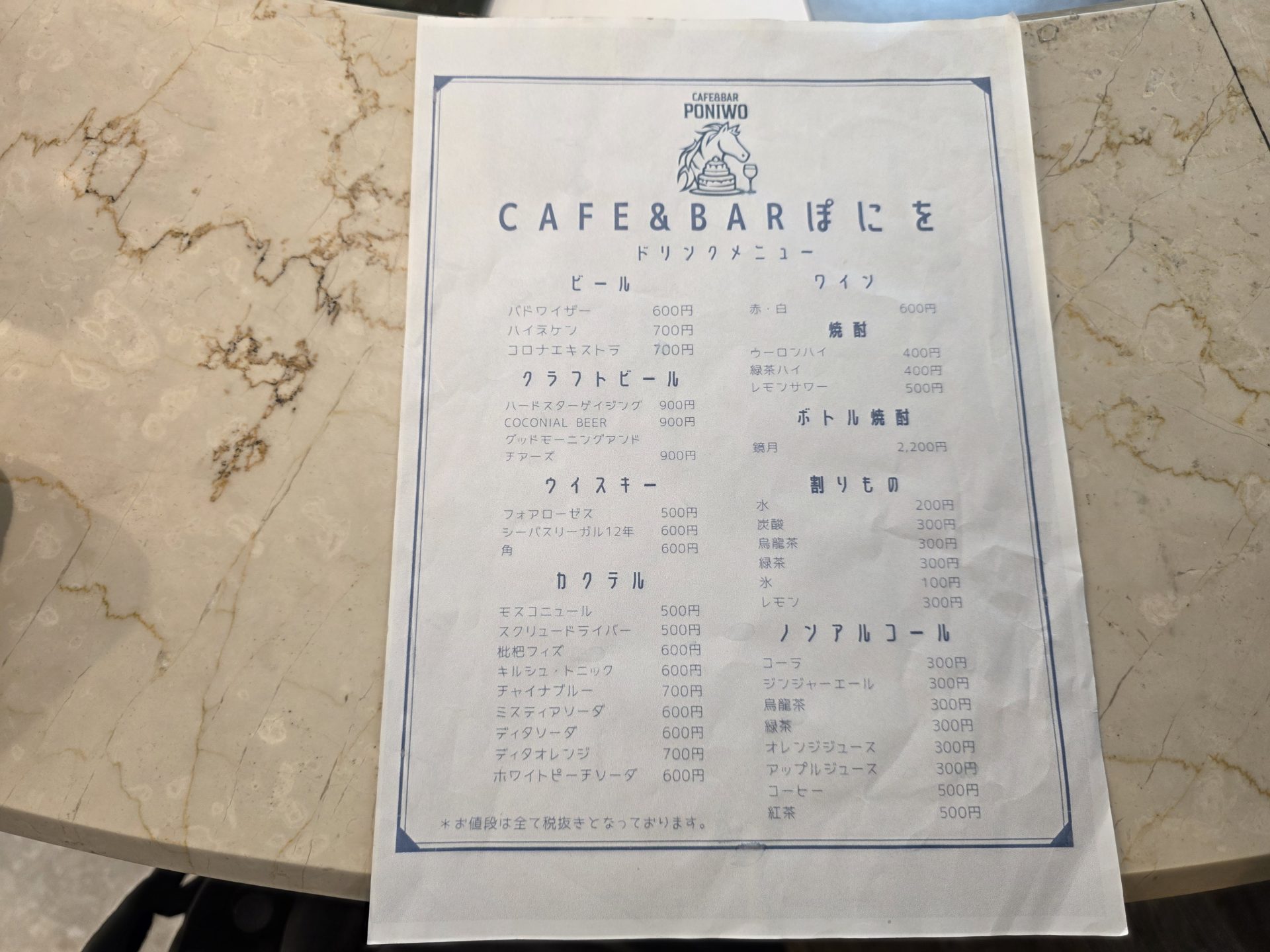 あれ、ここはケーキ屋さんですよね?喫茶店だったかなと思いながら座っていると、出てきたのはこちら。クラフトビールにカクテル?なんとアルコールのメニュー表。