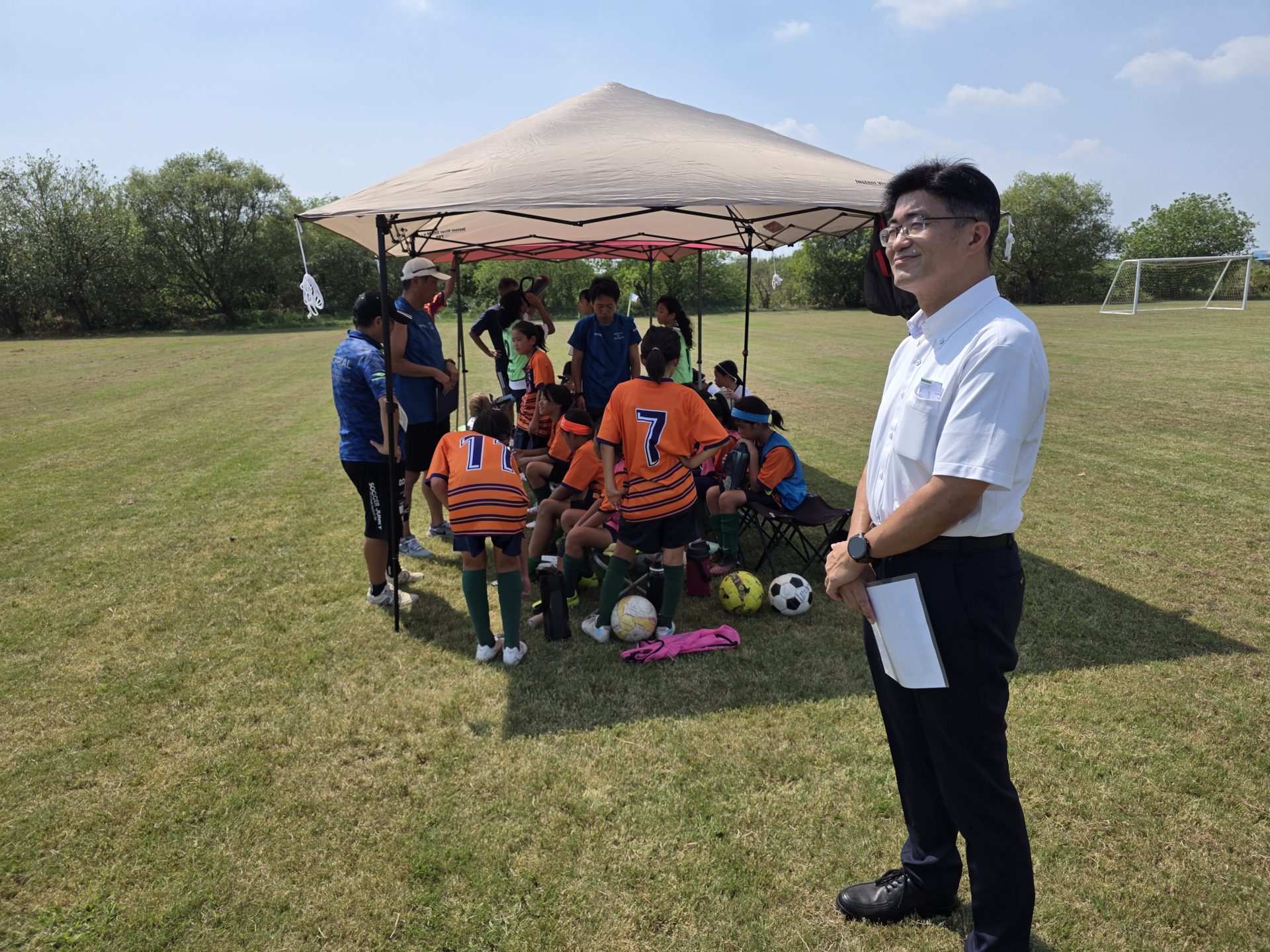 この日の主水サッカー場では晴天の下、近隣市のチームを招いての「松戸近隣少年少女招待サッカー交流大会」が開催されていました。